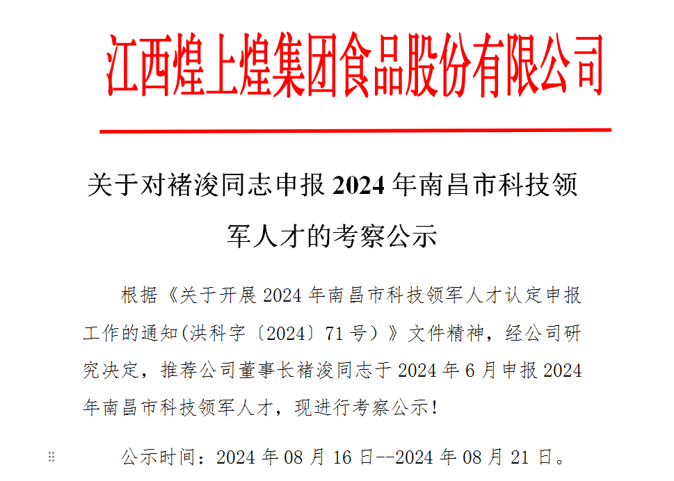 關(guān)于對褚浚同志申報2024年南昌市科技領(lǐng)軍人才的考察公示根據(jù)《關(guān)于開展2024年南昌市科技領(lǐng)軍人才認定申報工作的通知(洪科字〔2024〕71號)...